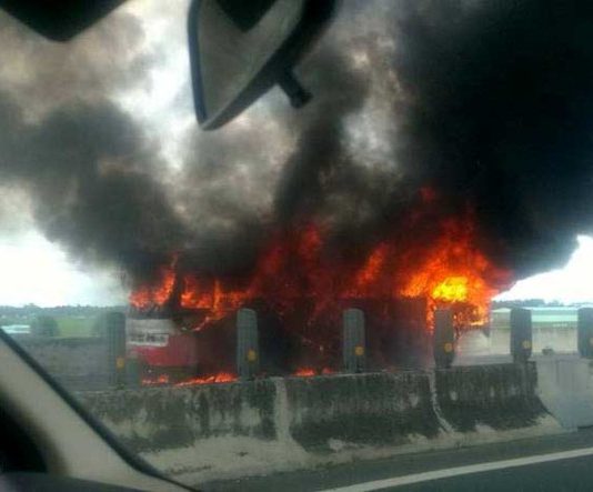 Xe khách 50 chỗ cháy rụi trên cao tốc TP.HCM – Trung Lương