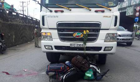 Đón con đi học về, hai mẹ con bị xe tải...