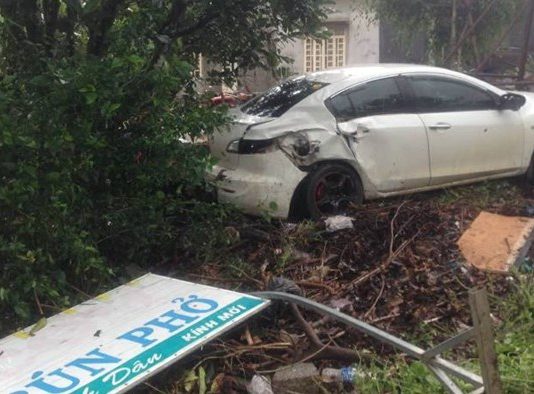 Xe ô tô lao sang đường ngược chiều đè nát 2...