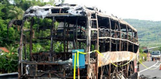 Xe giường nằm cháy trơ khung trên quốc lộ 1
