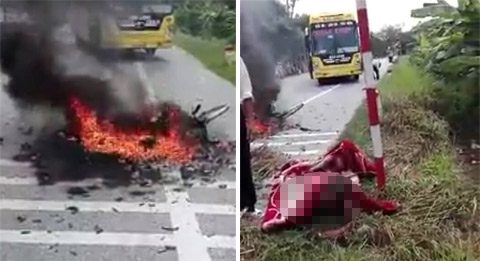 Xe khách đâm xe máy phát nổ, người phụ nữ bỏng nửa thân