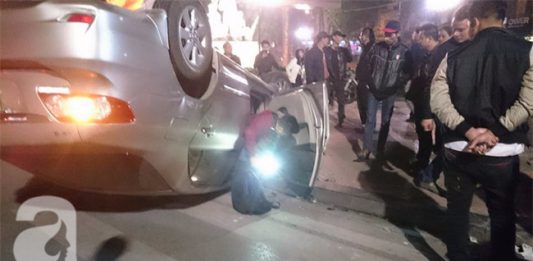 Xế hộp “chổng vó” trên đường, nhiều người thoát nạn bò ra