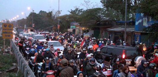 Xe cộ chật vật trở lại thành phố ngày đầu năm mới