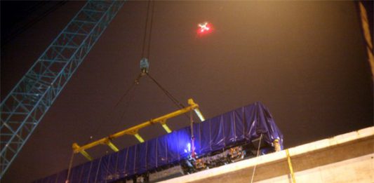 Hà Nội: Người dân đội mưa giữa đêm xem cẩu đầu tàu lên ray đường sắt trên cao