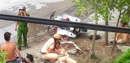 Xe máy va chạm với ôtô tuần tra CSGT, chồng tử...