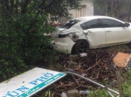Bị húc văng gần 20 m, ôtô tập lái biến dạng