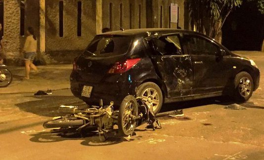 Xe máy “kẹp” 3 lao thẳng ô tô, 3 người nguy kịch