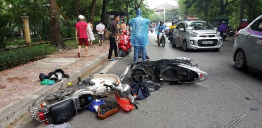 Lao thẳng vào ô tô, xe máy vỡ đầu ngay trung tâm Hà Nội