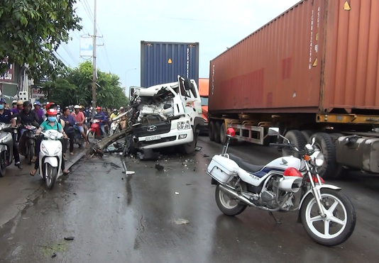 Container mất lái kéo lê ô tô hơn 30 mét, 3...