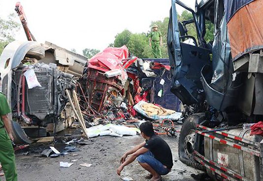 Hai container tông nhau trên đường Hồ Chí Minh 2 người chết, 1 người bị thương