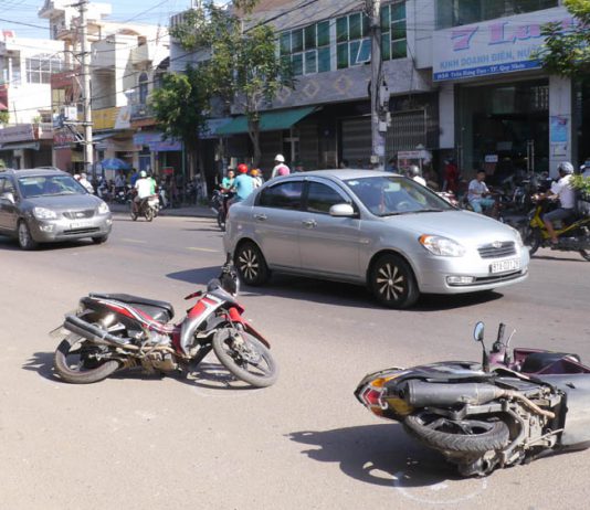 Xe ‘điên’ húc bay cả loạt xe máy ở phố biển Quy Nhơn