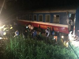 Tàu chở hơn 200 khách bị trật bánh ở Thanh Hóa
