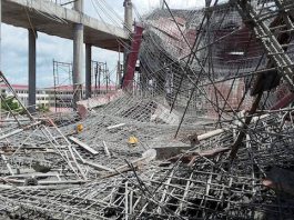 Sập giàn giáo tại ngôi chùa đang xây, 9 công nhân bị thương